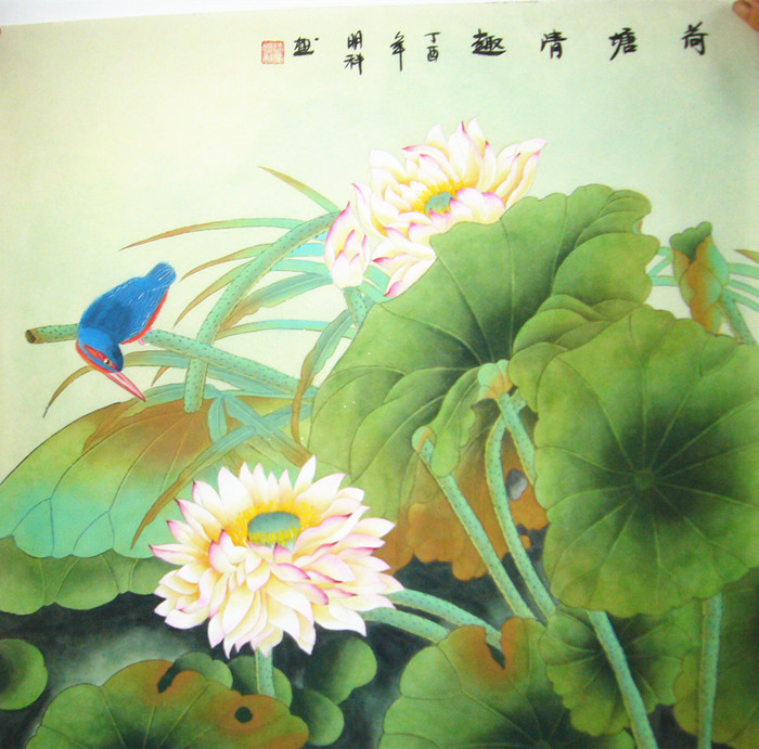第一字画网的工笔荷花鸟图《荷塘清趣》,这幅四尺斗方的写意国画花鸟画装裱后尺寸为0.8米左右,是一幅非常温馨的作品,作品画风细腻、栩栩如生,十分雅致。挂在家里客厅或公司的会客室都是非常不错的选择,亦可用作送礼等场合,如果放在画廊出售,诸葛明科老师此幅工笔斗方荷花鸟图《荷塘清趣》的标价在1500元左右。