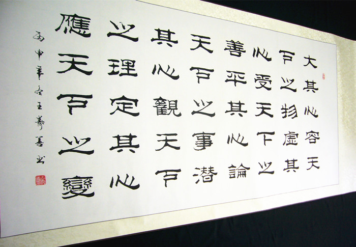 第一字画网的四尺哲理办公室书房书法,这幅书法非常适合挂在书房或客厅,装裱后尺寸达到1.8米长,作品笔法老练,苍劲有力,如果放在画廊出售,寿善老师此幅办公室、书房诗词书法的价格在1800元左右。