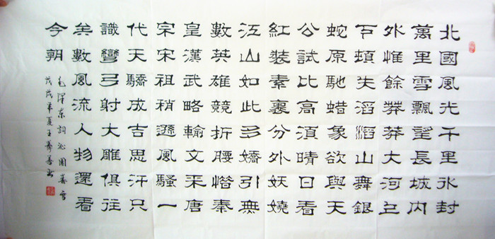 • 产品简介: 毛泽东诗词沁园春雪书法,王寿善老师作品。