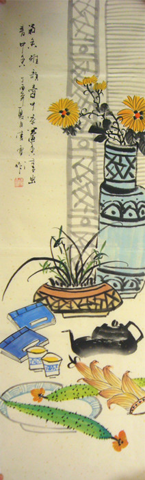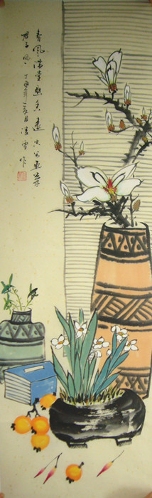 竖幅字画作品装裱成轴的效果(方便直接悬挂)