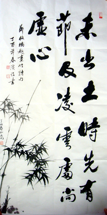 竖幅字画作品装裱成轴的效果(方便直接悬挂)