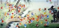 第一字画网的童子画,这幅三尺斗方童子画裱完后尺寸近0.6米见方,是一副水准上佳的工笔画作品,作品画风细腻、人物生动栩栩如生,挂在家里客厅或是送人都是非常不错的选择,如果放在画廊出售,王柳春老师此幅童子画的标价在1500元左右。