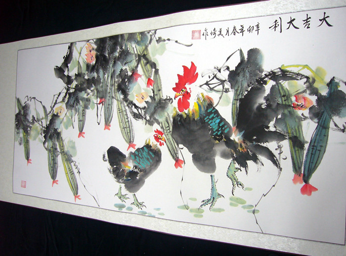 第一字画网的花鸟画雄鸡图大吉大利 ,这幅四尺双鸡水墨画给人一种积极向上的朝气,裱完后长度在1.8米左右,作品寓意大吉大利,挂在家里客厅、卧室或是送人都是非常不错的选择,如果放在画廊出售,王美琦老师此副花鸟画大吉大利裱完后的标价在1500元左右。