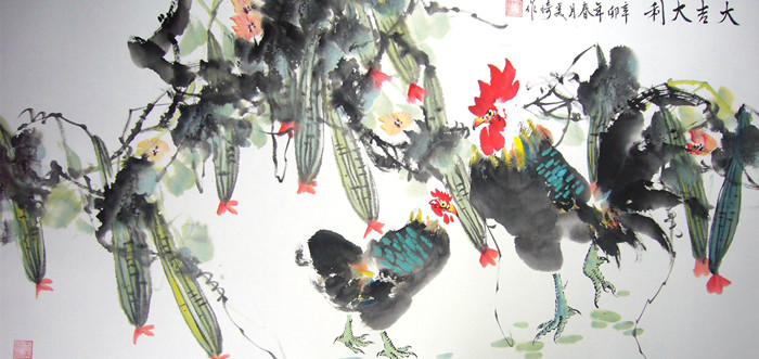 • 产品简介: 花鸟画雄鸡图大吉大利,王美琦老师作品。