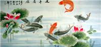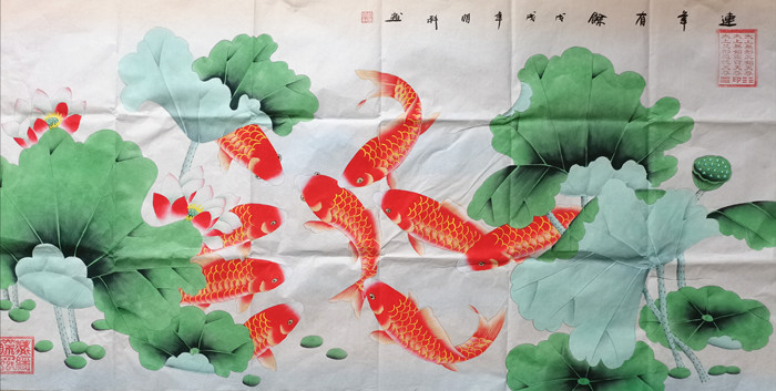 • 产品简介: 荷花鲤鱼图九鱼图,诸葛明科老师作品。