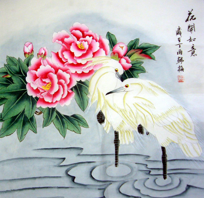 韩梅,1966年生于山东济南,1988年毕业于山东美术学院国画专业,1990年中央美院进修,现为山东美协会员。中青年画家韩梅擅长花鸟画的艺术创作,曾受美术大师黄永玉先生指点。作品数次参加国内大型美术展览,另有多幅作品发表于《齐鲁晚报》等报纸刊物。2003年元月在山东省青岛市文化馆成功举办首次个人画展,作品大部被藏家收藏。