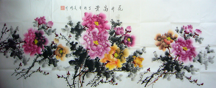 第一字画网新到的客厅装饰富贵牡丹画,数量只有唯一一幅,这幅小六尺写意牡丹画画风细腻、挂在餐厅、客厅、书房都可以,如果放在画廊出售,王美琦老师此副六尺牡丹画作品装裱后的价格大约在1800元左右。