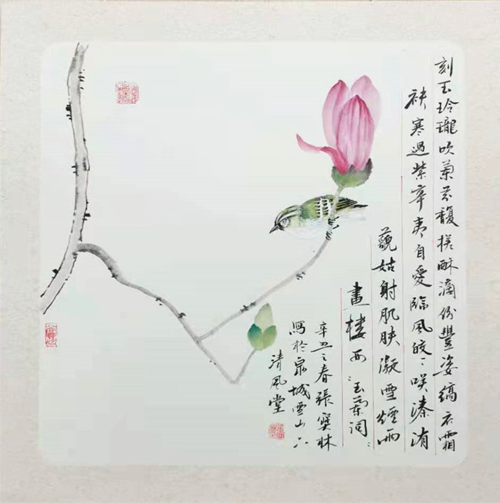 • 产品简介: 斗方花鸟画玉兰图,张宝林老师作品。