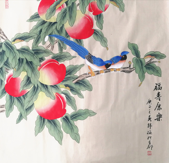 第一字画网的斗方花鸟画《福寿安康》,作品适合挂在餐厅,也可以挂书房、卧室或是玄关过道处,是一幅很有意境的小作品。这幅贺寿花鸟国画作品灵感十足,如果放在画廊出售,韩梅老师此幅四尺斗方花鸟画的价格大约在1800元左右。