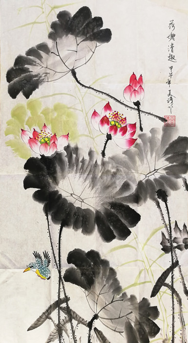 • 产品简介: 三尺客厅荷花花鸟画,王美琦老师作品。