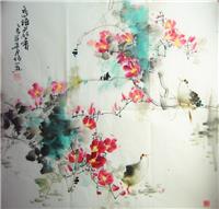 韩梅,1966年生于山东济南,1988年毕业于山东美术学院国画专业,1990年中央美院进修,现为山东美协会员。中青年画家韩梅擅长花鸟画的艺术创作,曾受美术大师黄永玉先生指点。作品数次参加国内大型美术展览,另有多幅作品发表于《齐鲁晚报》等报纸刊物。2003年元月在山东省青岛市文化馆成功举办首次个人画展,作品大部被藏家收藏。