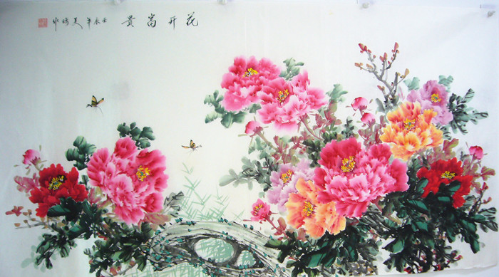 第一字画网的六尺富贵牡丹图,六尺牡丹作品裱完后尺寸近2.2米,牡丹寓意着富贵吉祥,作品上又写着花开富贵四个字,是一幅性价比不错的六尺作品,如果放在画廊出售,美琦老师此副六尺富贵牡丹图裱完后的标价在1600元左右。