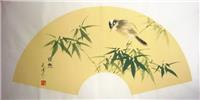 扇形竹鸟花鸟画