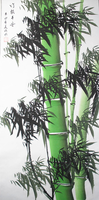 第一字画网的国画竹子,这幅四尺竹子作品非常适合挂在家里的书房或客厅,装裱后尺寸达到1.8米长,作品细腻生动、画功老练,如果放在画廊出售,美琦老师此幅国画竹子的标价在1000元左右。竹子长的亭亭玉立、节坚心虚,有君子之风,象征挺拔和坚强不屈,故人们将竹子以高洁品质而称颂,为一种吉祥象征物。竹心空虚,所以象征着谦虚的美德。竹子四季常青不变色,因此也用来形容老年人健康的象征。“竹”又与“祝”谐音,有美好祝福的习俗意蕴。