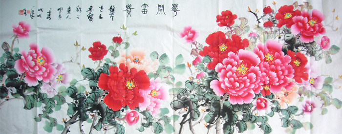 第一字画网的国画六尺牡丹,这幅小六尺的牡丹作品裱完后长度近2.2米左右,是一幅水准上佳的作品,作品画风细腻、栩栩如生,牡丹寓意着富贵吉祥,作品上又写着花开富贵四个字,挂在家里客厅或是送人都是非常不错的选择,如果放在画廊出售,王柳春老师此幅国画六尺牡丹的标价在1800元左右。