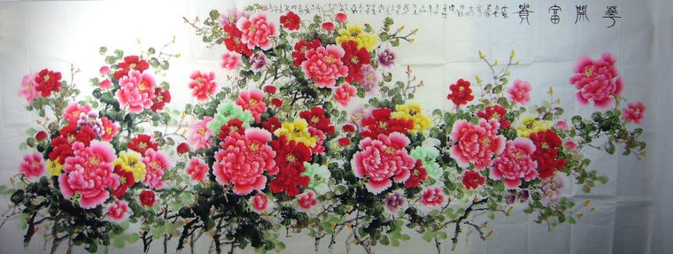 • 产品简介: 丈二牡丹画,精彩牡丹作品,题字为花开富贵,裱后尺寸在四米左右,气派非凡。