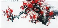 第一字画网的粉色梅花图,数量仅一幅,是幅适合客厅或居室挂的梅花作品,是一幅性价比很高的全手绘四尺梅花作品,如果放在画廊出售,广西画家明科老师此幅五福梅花图的标价大约在1200元左右。