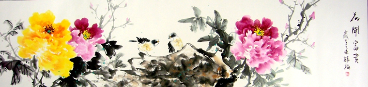 • 产品简介: 适合卧室挂的画,韩梅老师四尺对开花鸟,已装裱。