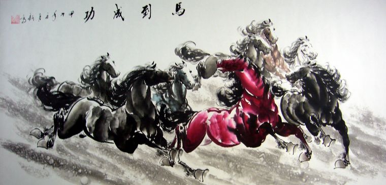 • 产品简介: 四尺国画八骏图,画家张新鸣四尺作品,数量仅一副。八骏奔马图寓意着马到成功,适合挂在公司办公室,或是家里的客厅。