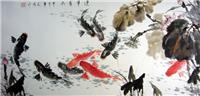 第一字画网的三尺九鱼图,工笔九鱼荷花作品裱完后尺寸近1.4米左右,是一副非常清新的作品,作品画风细腻、栩栩如生,九鱼图寓意着长长久久,吉祥如意,挂在家里客厅或是送人都是非常不错的选择,如果放在画廊出售,王美琦老师此幅三尺九鱼图的标价在1000元左右。“鱼”与“余”谐音,鱼则象征着富贵,所以中国吉祥图案中常有鱼的图案。九鱼图中,“九”取长长久久之意,“鱼”取其万事如意,寓意年年有余,富贵有余。